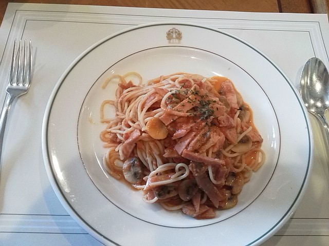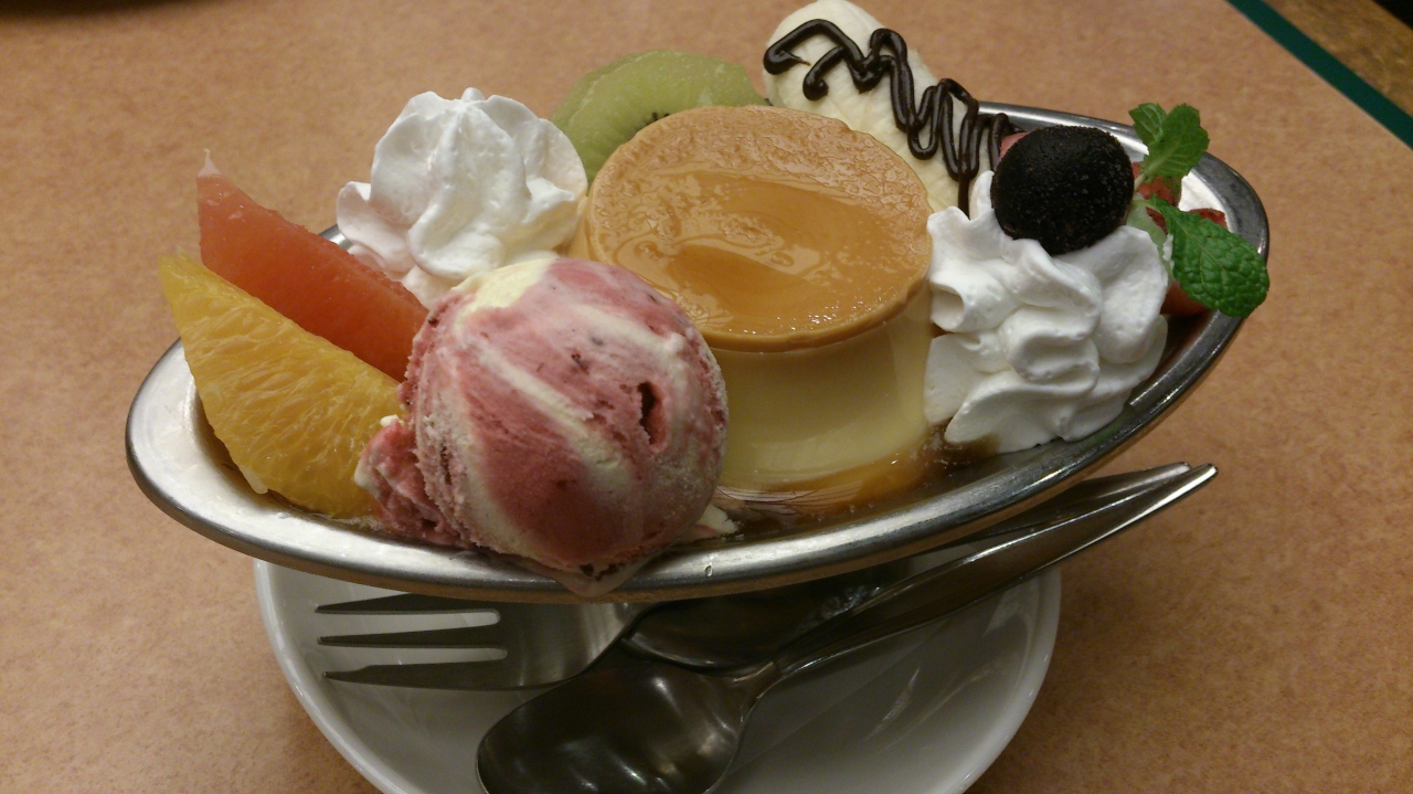 このザ・カフェは様々な料理の発祥の地だそうですが、プリン ア ラ モードもその一つとのことです。ボリュームのあるデザートでした。
