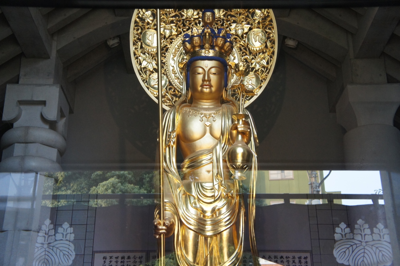 光源寺にあった駒込大観音は、夏目漱石も小説三四郎で触れている観音だったのですが、その後の東京大空襲で焼失。現在の観音は、平成5年に再建されたたもの。身の丈6m。全身が黄金に輝く大観音で、専用のガラス張り建物に安置されていました。