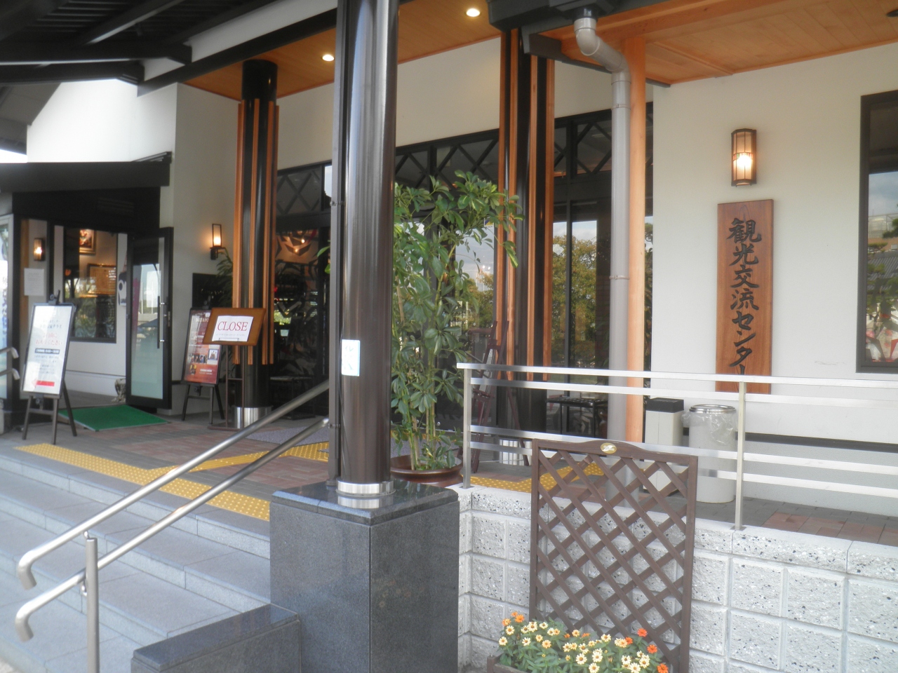 岸和田城を観に行こうと、坂を上って行くと観光交流会館という立派な建物があります。 午後4時近いためか、正面出入り口にはCloseの看板がありました。 でも、左手は無料休憩所になっていて、ここからの眺めがいいです。飲食禁止でトイレがかりられるのかはわかりませんでした。