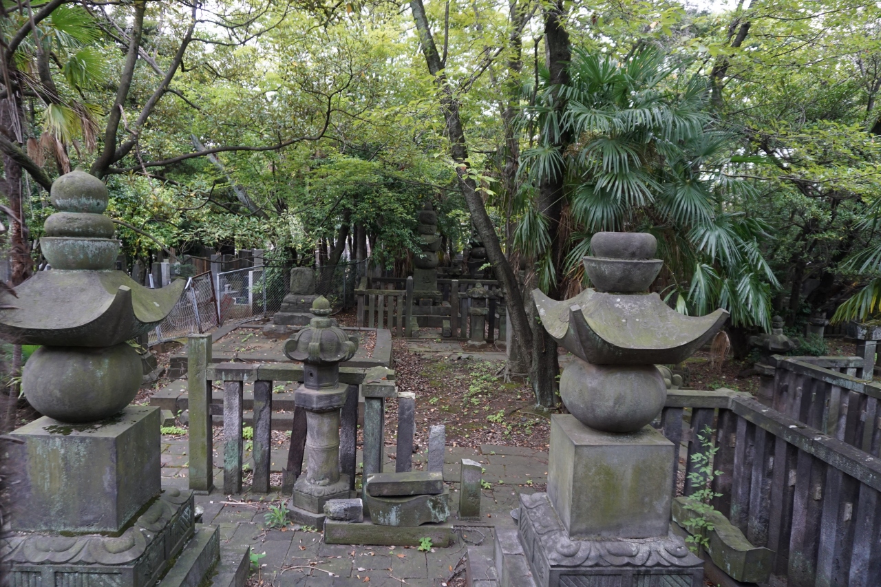 元麻布の高台に賢崇寺という大きな寺があります。ここは、佐賀鍋島藩歴代藩主の菩提寺。寛永12年(1635年)創建の曹洞宗の寺で、本堂の裏手から、肥前佐賀藩主鍋島家墓所があって、中を見学しようと思ったのですが、フェンスに囲まれて入ることはできませんでした。歴代藩主た家来の墓だと思いますが、大きな石塔がいくつも並んでいるのが見えました。
