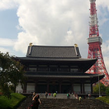 徳川家の菩提寺として有名な増上寺。都会のど真ん中にびっくりする程広い敷地に建てられています。立派な本堂の奥には東京タワーが見えて、青空をバックにした昼間も美しいですが、ライトアップされた夜も幻想的です。この景色を活かしたライブイベントなども良く行われています。
