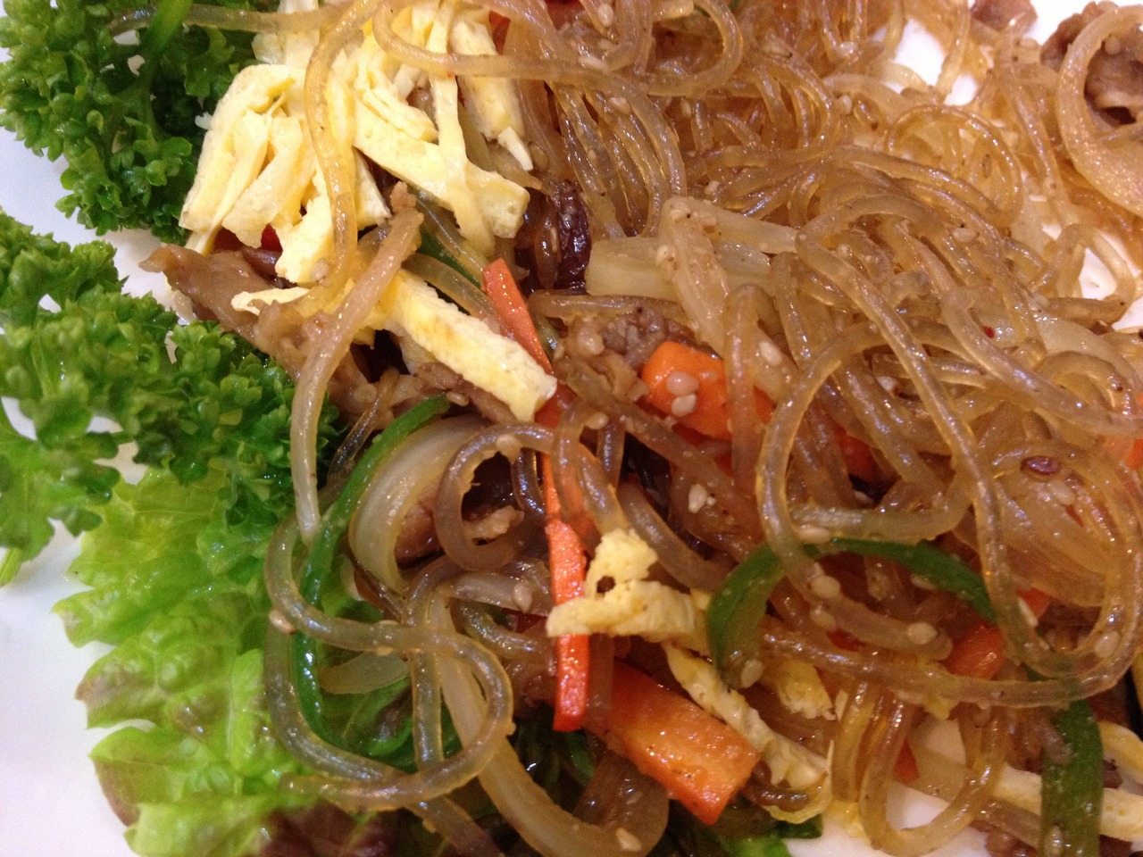 チャプチェ、海鮮チヂミ、豆腐キムチ