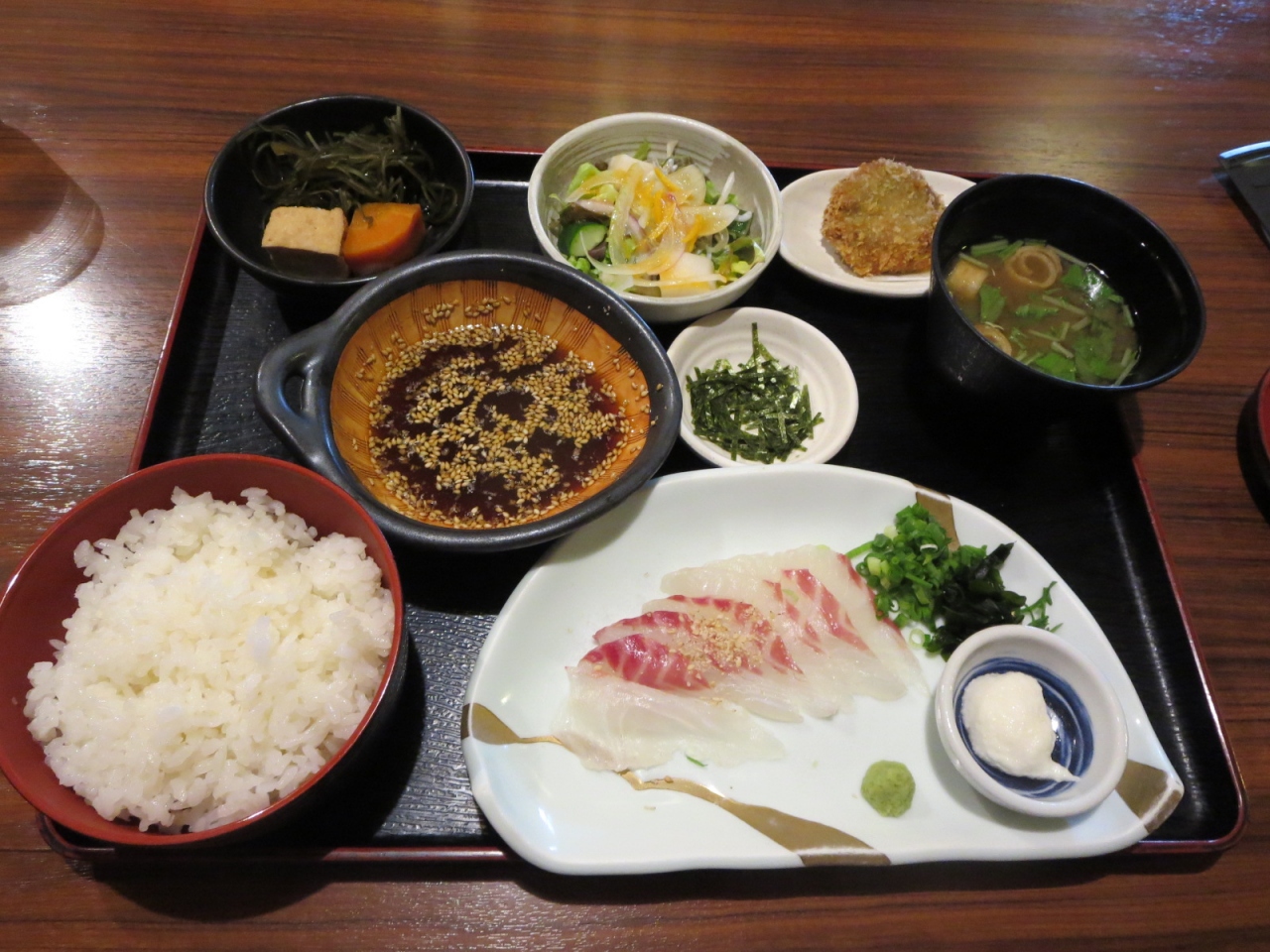 だし醤油につけた鯛のお刺身をご飯に乗せて頂く鯛飯、とても美味しかったです。