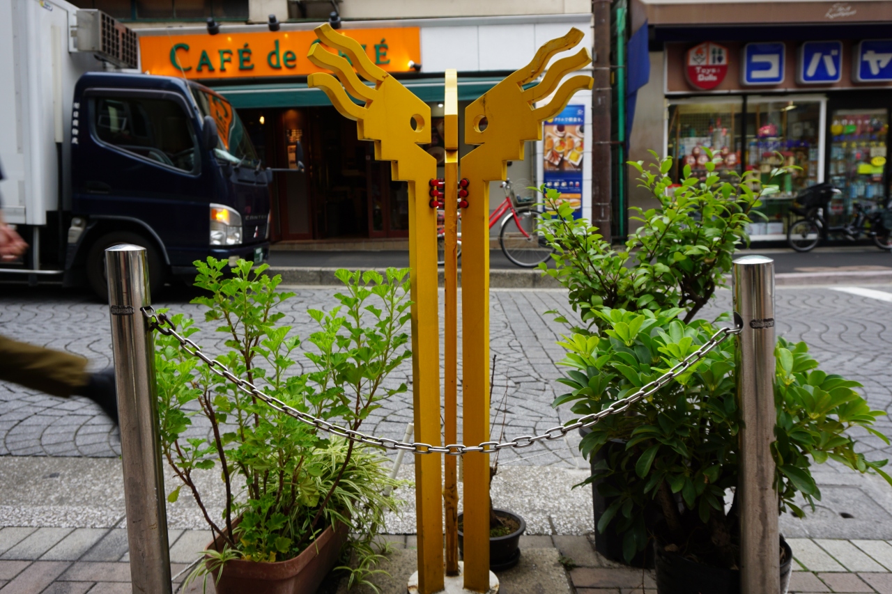 微笑みのモニュメント 太陽の微笑みは、麻布十番の歩道に点在する街の芸術作品の一つ。ちょっと小さめの作品ですが、これはテーマと造形がシンプルに一致していて、分かりやすい。太陽を擬人化したものですが、髪の毛のギザギザが暖かな日の光を表しています。