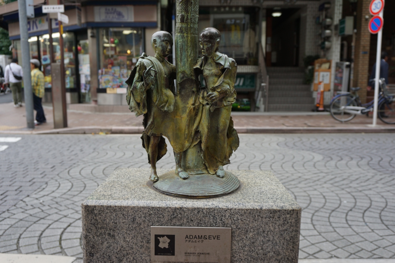 アダムとイヴは、旧約聖書のテーマんでしょうが、この作品の二人は、どちらかといえば仏教の世界のような東洋的な表現で造られているような。フランス人の芸術家の作品ですが、ジャポニズムとかの歴史もあるので、あまり違和感なく造ったものかも。いずれにしても、ちょっと意表をついた作品です。