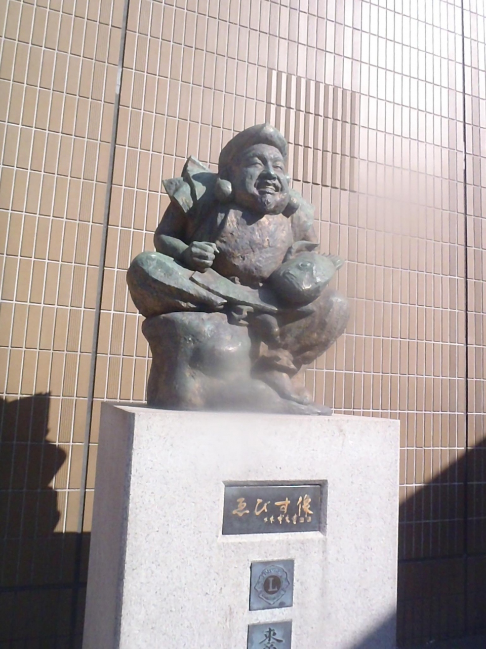 JR山手線恵比寿駅西口の駅前広場にある七福神の一人恵比寿天の像です。