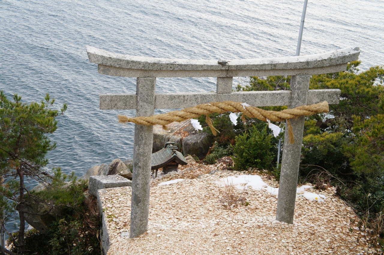琵琶湖に面して突き出した所に竜神拝所があり、願い事を書いてかわらけ投げをすることができます。投げたかわらけが鳥居をくぐれば願い事が成就すると言われていますが、距離があるので結構難しかったです。辺りは工事中でシートで覆われていました。投げる場所だけシートが外されていて鳥居は見えますが、見晴らしも悪く残念でした。