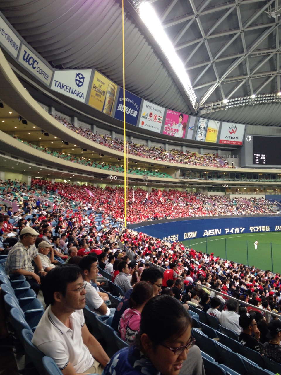 ドームの中に、半分ぐらいは「赤=広島のファン」でした。
