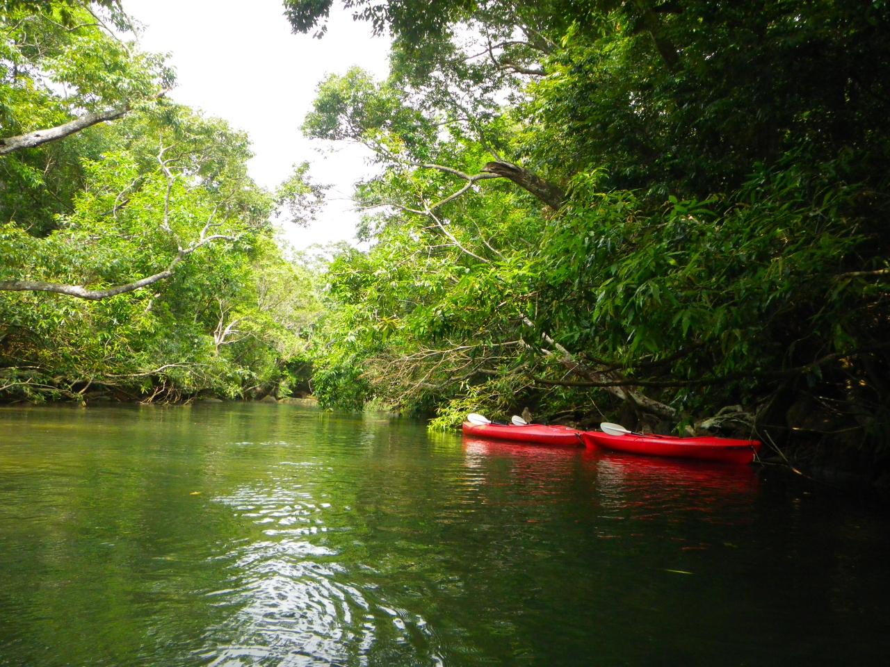 マングローブの森をカヌーで泳ぐのはとても気持ちいいです。