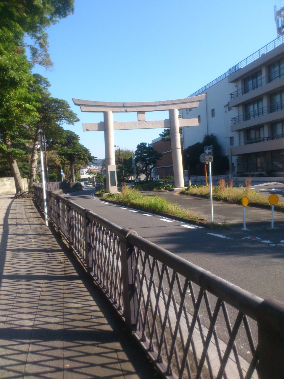 由比ヶ浜の方から鶴岡八幡宮へ向かうと最初にある鳥居です。二の鳥居と三の鳥居は、その間の段葛を歩くことができますが、この一の鳥居は若宮大路の車道にあるので、その下まで行くのは無理です。石造りの大きな鳥居で、四代将軍家綱によって寄贈されたようです。