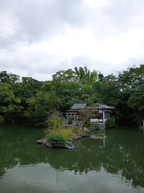 地下鉄烏丸線、丸太町駅近く、堺町御門近く、京都御苑内、九条池の中島にあります。厳島神社は、清盛の母とされている祇園女御のために広島の厳島神社をこの地に勧請したものだそうで、後に、祇園女御も祀られたそうです。
