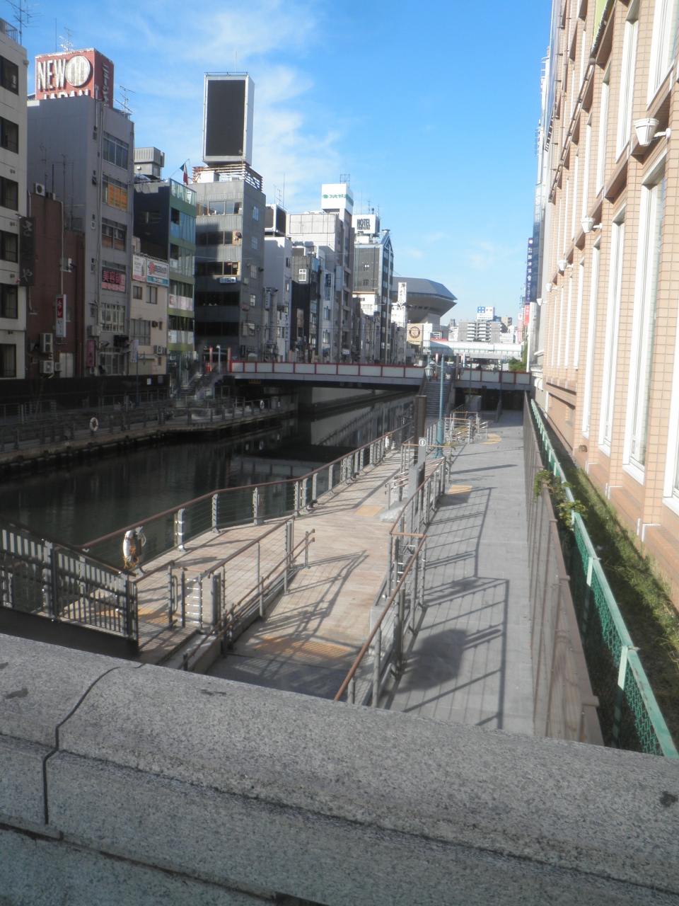 大阪ミナミのアメリカ村のホテルに泊まったとき、南海鉄道や地下鉄の難波駅にいくとき、新戎橋を渡りました。 戎橋が現代的な橋なのに、新戎橋は欄干が赤く塗られたレトロな感じの橋です。 にぎやかさは戎橋にはかなわないけど、ホテル街があります。