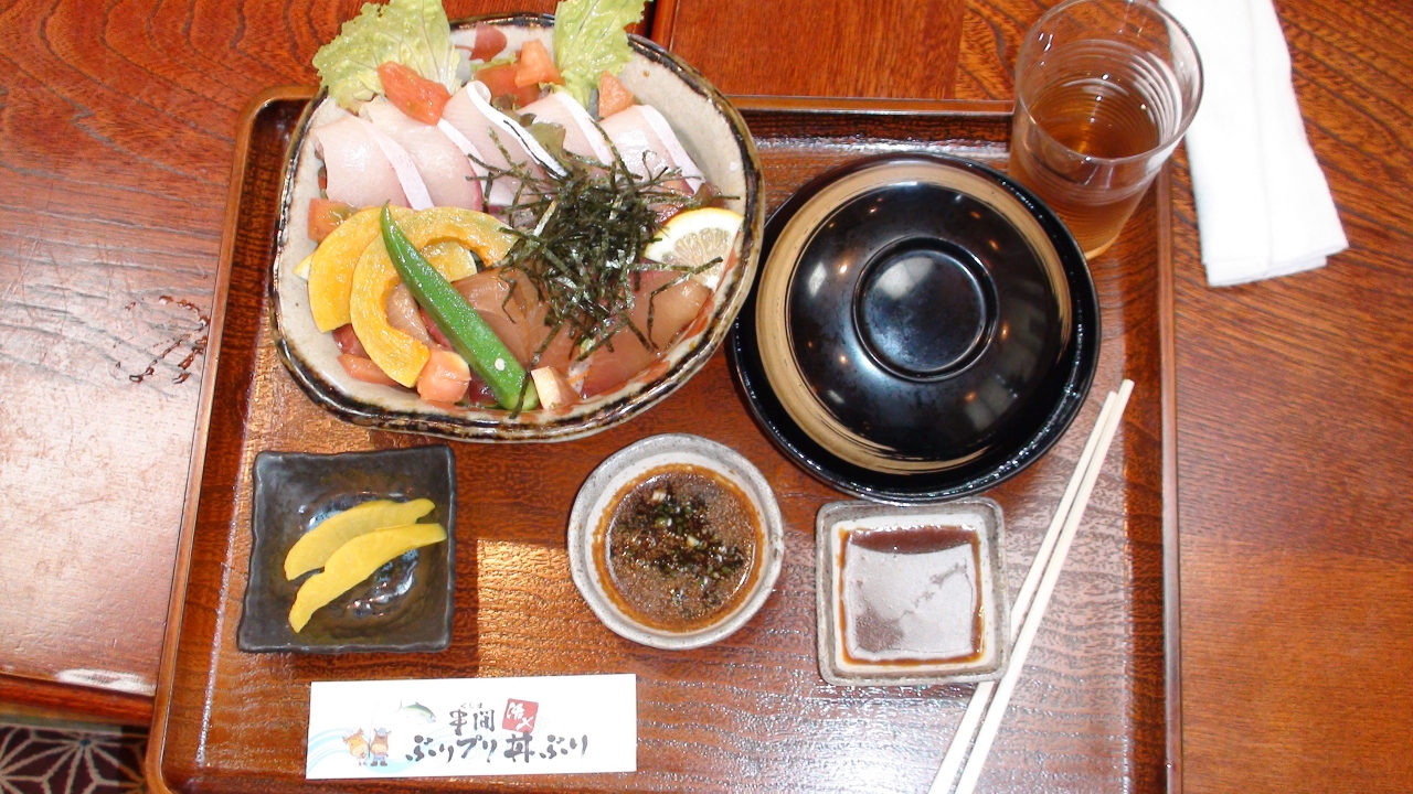 串間駅の裏側になり車で行くと4分くらいで着く。駐車場も広くゆったりしている。店内も活気があり、いかにも活〆ぶりを扱っている雰囲気で良い。ぶりの量もたっぷりでサラダに使う野菜も5種類以上入っており、つけ物としてアラ汁までついて1000円でした。ご飯も大、中、小と選択出来食材はたっぷりでした。