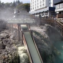 ここが見たくて宿も湯畑近くの宿にし着いた日の夕方・夜・次の日とこの景観を楽しみました。硫黄臭はけっこうあるので嫌いな方は辛いかも、、、、。