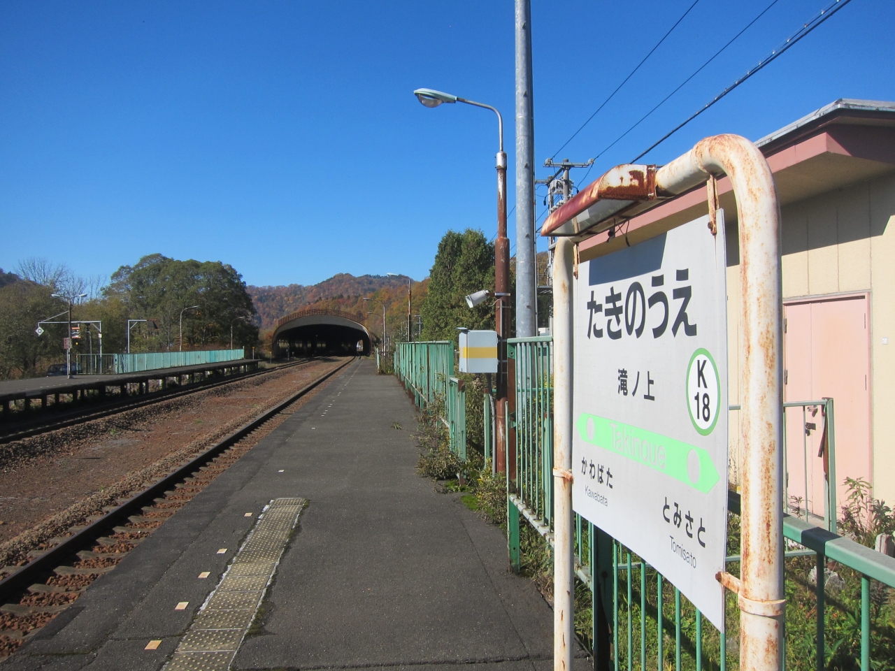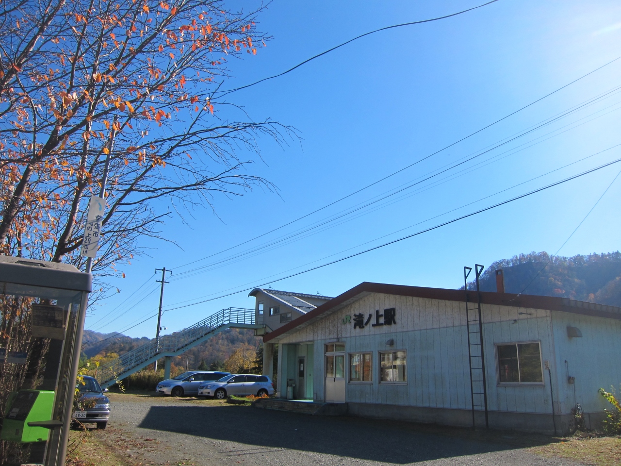 紅葉がきれいな滝の上公園の最寄り駅です。公園は、駅から数百mのところにあります。徒歩で行けます。紅葉期に訪れると、洗濯板のような千鳥ヶ滝や竜仙峡の景色がより一層映えます。紅葉は10月中旬が見頃のようです。