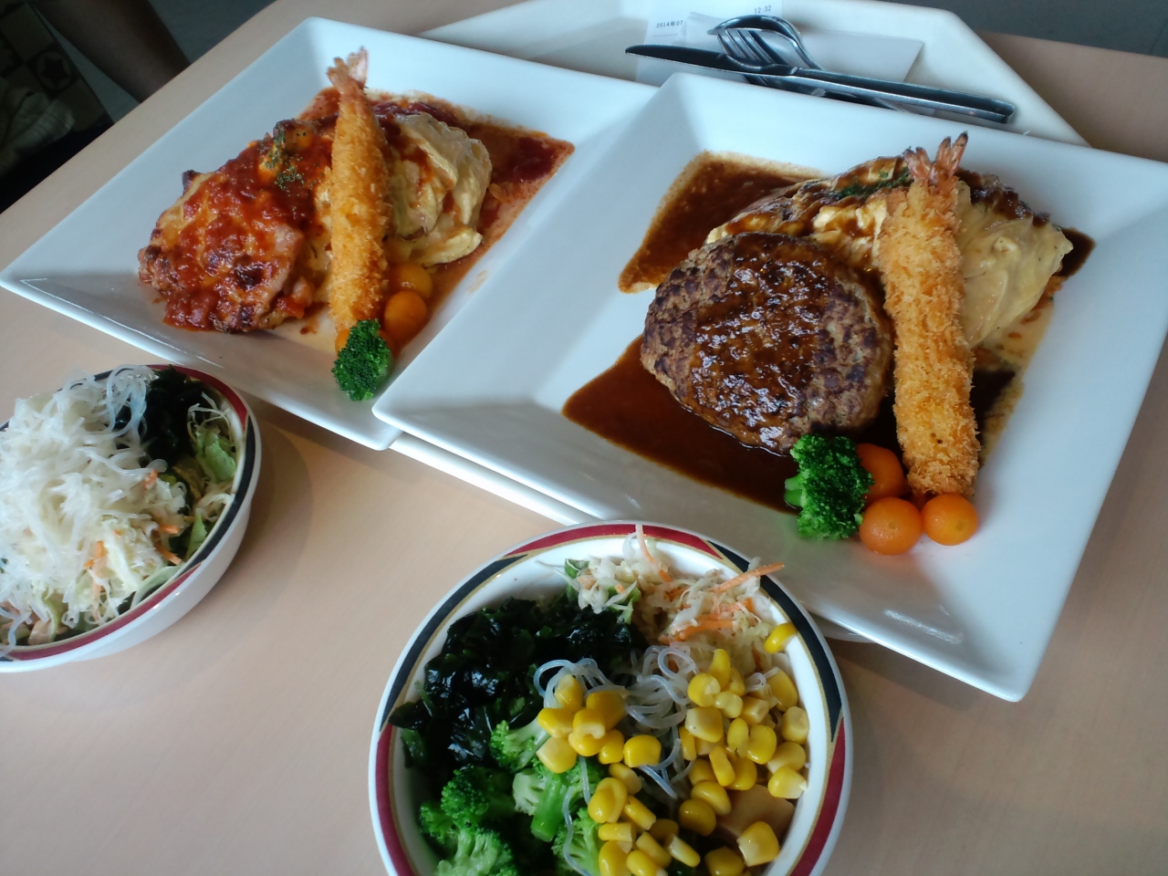 オムライス&ハンバーグ&えびフライのセットと、オムライス&チキン&えびフライのセットを注文しましたが、どちらも美味しかったです。