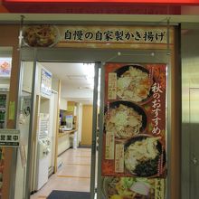 JR郡山駅構内ビルにある改札にも近く駅弁弁当屋さんの隣。よく見かける駅の立ち食い蕎麦屋さんですが、カウンター座席があります。
