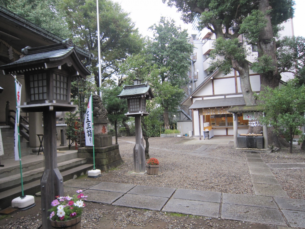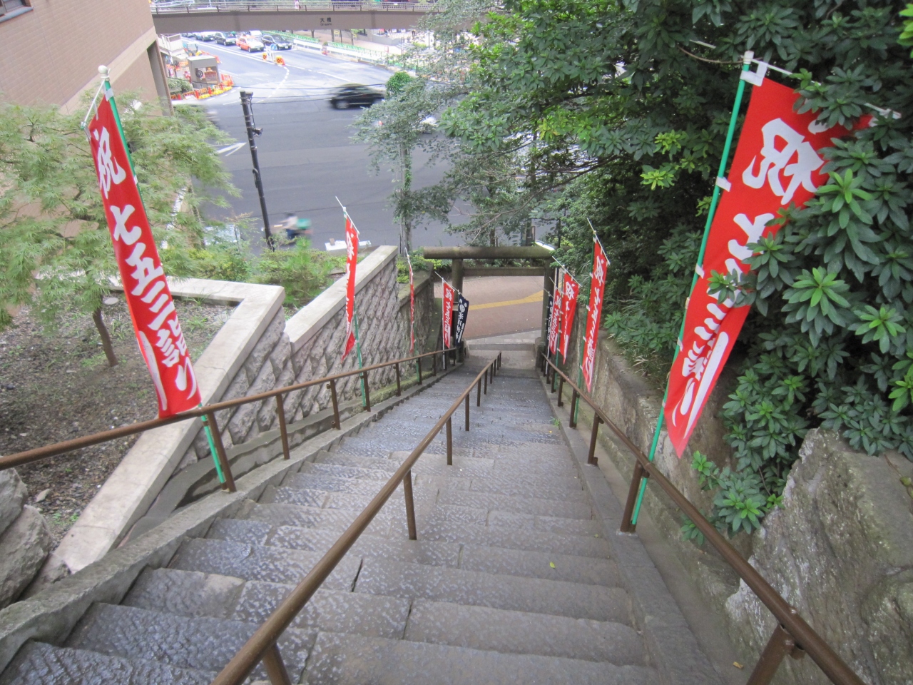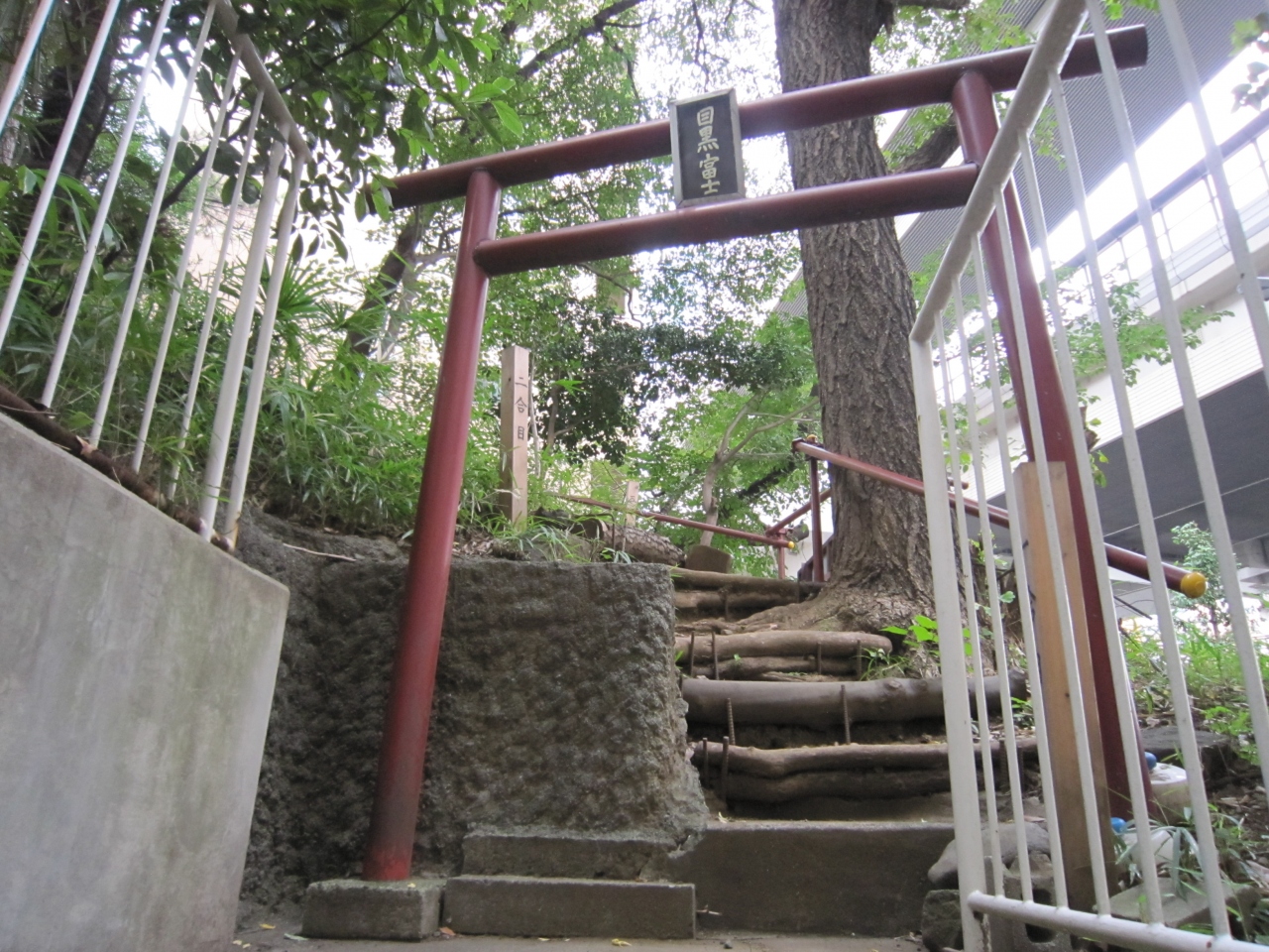 東急田園都市線池尻大橋駅北口から渋谷方面へ戻ります。目黒天空庭園の246線をはさみ向かい側です。上目黒等この地域の鎮守の神様だそうです。急な石段があり大山道の道標があります。石段を上ると正面に本殿、左右奥に稲荷神社、浅間神社、右横に太いご神木、社務所、小さな田圃がありました。急な石段を上るのは結構きついです。神社の行事がある時は賑やかなのでしょうが、訪れた時は静かでした。浅間神社があったので境内を見回りましたら富士浅間登山道があり登山口は交番の横でした。1合目、2合目と表示があります。また、社務所では毎月15日に「社子屋」(やしろこや)で様々な催し会を開催しているようです。神社の前は246号線、上は高速道路、左右はビルのため今は富士山は見えません。