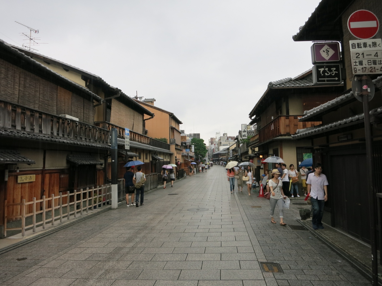 四条通りから建仁寺に続く花見小路は石畳で、両サイドには町家風の外観の飲食店が並び、とっても京都らしい雰囲気のある通りです。以前、来たときは本物かどうか分かりませんが、舞子さんを見かけました。運が良いと会えるかもしれません。