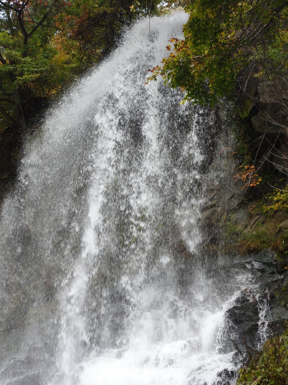 横谷渓谷は川沿いにハイキングコースがあって,いくつかある滝をみながら散歩が楽しめるのですが,一番簡単にいけるのがこの乙女滝。駐車場も近くにあるので便利です。滝の姿も,乙女がヴェールとかぶったような形をしていてしゃっれています。よいところです。