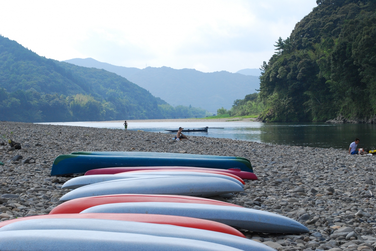 沈下橋を見ながら、四万十川を上流の方までドライブしました。川の水は深みのある水色で近くでみると透明度がよく分かります。川は比較的穏やかで色とりどりのカヌーイストもよく見かけます。高知は海より川遊びの方が人気があるのが納得です
