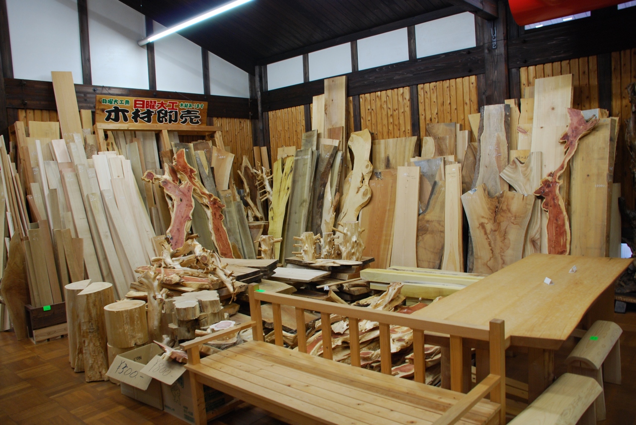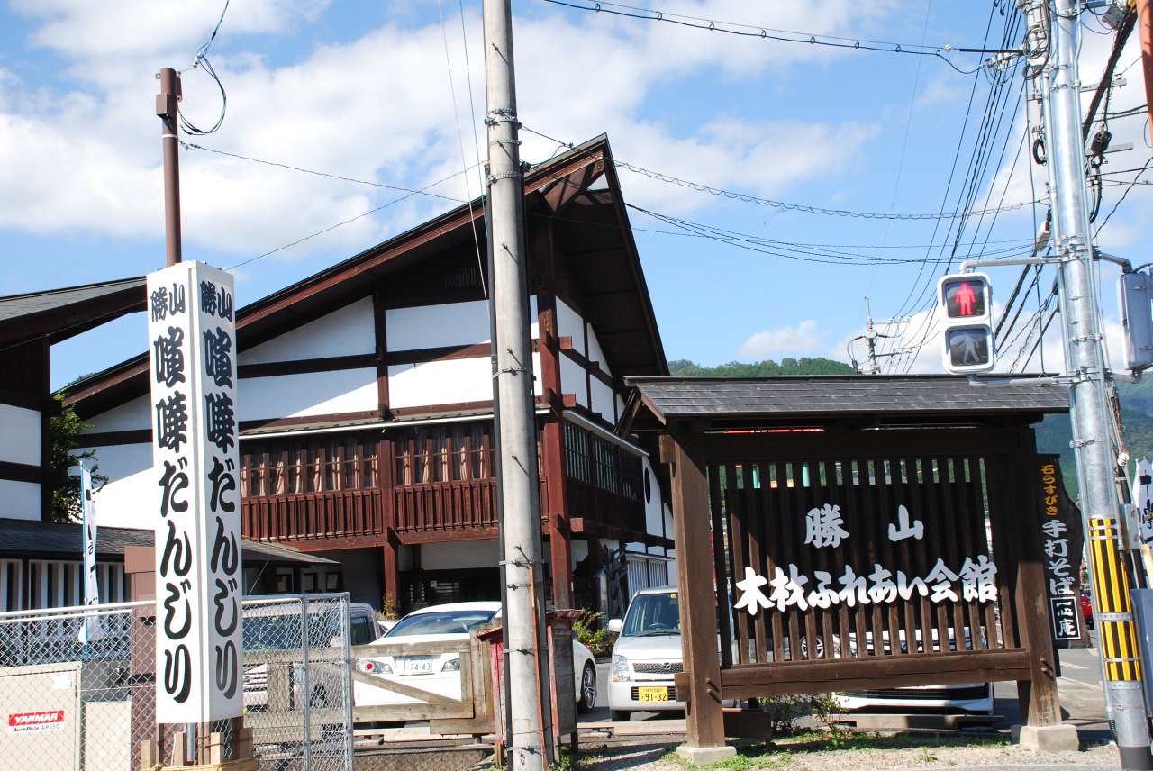 建物の外には色々な種類の大きな木材が置いていて、木材の町と言う事が実感出来ました。大きな木材もその場で購入出来るみたいでした。勝山木材のお土産が欲しい時は、ここはお勧めだと思います。棟続きの隣には、美味しい手打ち蕎麦の一心庵があります。反対隣には大型スーパーもありました。