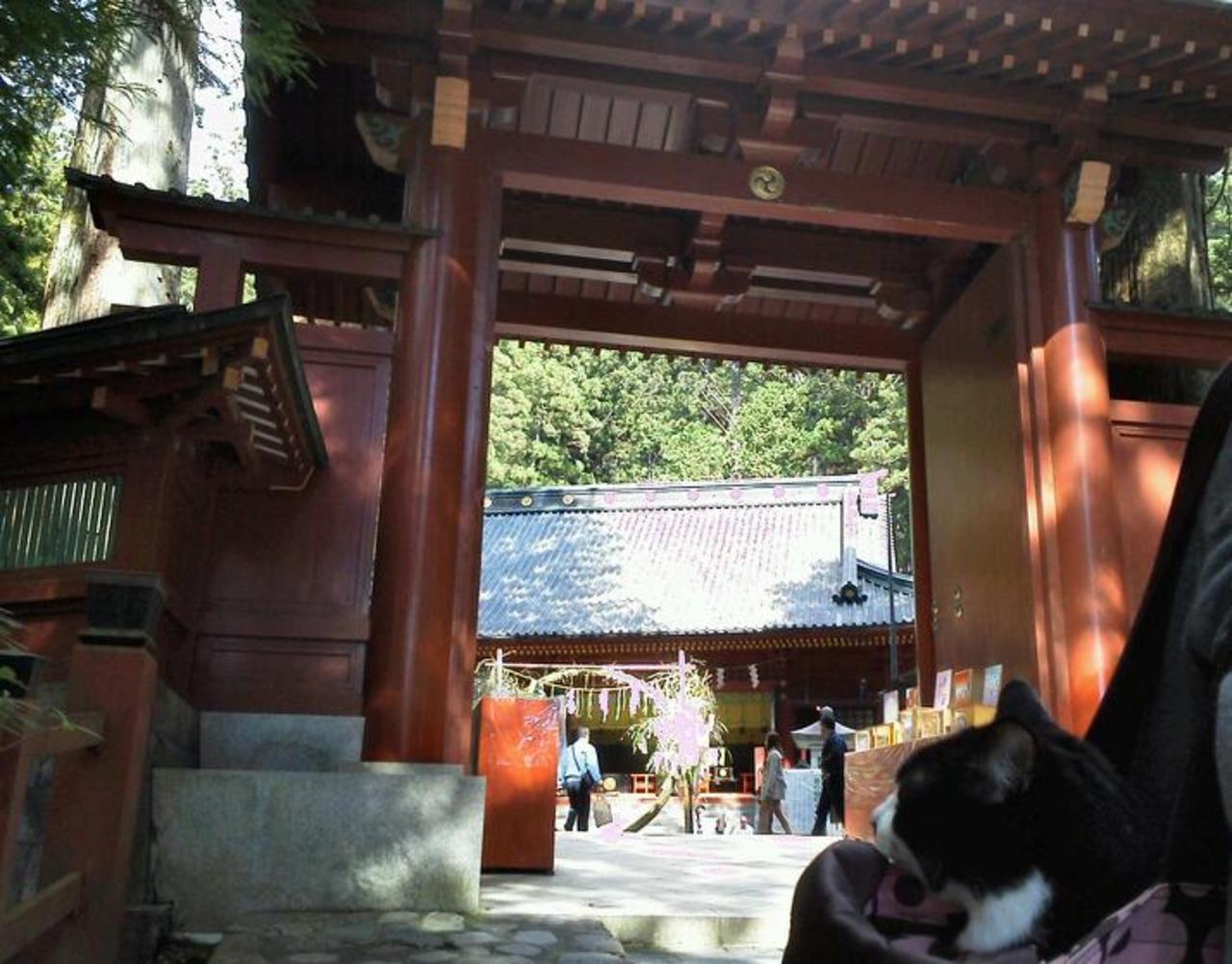 にゃんこ同伴でパワーを貰いに参拝!平日だったので、一般客も少なく修学旅行生もここまではあまりこないみたいでかなり空いており、猫ものびのびと見学できたようです。ここは霊泉や3つの御神木高天原などパワーを貰える場所や運試しの輪投げとか見所が多いです。また、神社の中に朋友神社、日枝神社と小さな神社もあり色んな神様がいて面白いです。霊泉の側にはお茶屋もあって沢山歩いた後の休憩にもいいです。