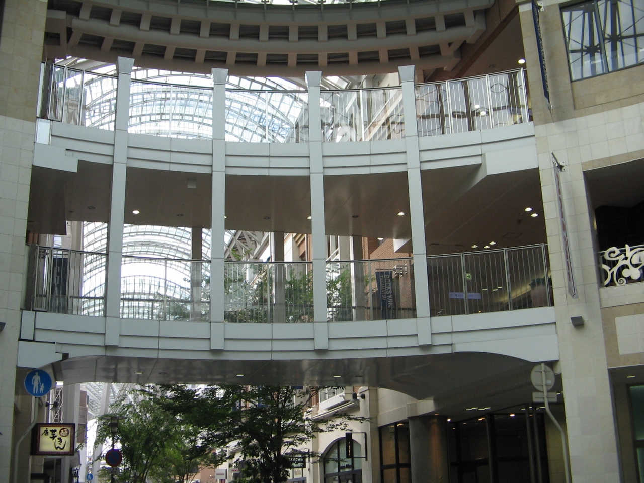 高松中央商店街の丸亀町、兵庫町、片原町の交差部、高松三越前に2007年完成したドーム広場です。何とも独創的と言おうかイタリアの古典建築を意識したガラスの丸天井(ドーム)の建造物です。