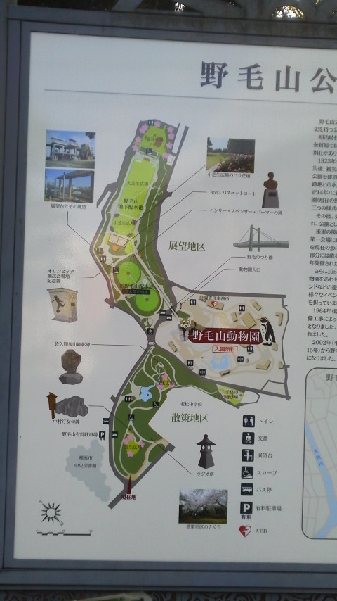 京急日の出町駅から裏山あたりに坂道をのぼっていくとある公園がここ「野毛山公園」。ここは、かつて、明治時代には豪商の別荘などがあったそうで、今では横浜市の公園になっています。この周辺に小山のような丘の上に公園があります。そのため、徒歩で行くにはちょっとした坂道をえっちらと歩かなければなりません。ただ、木々が茂った緑豊かな公園で、このエリアには無料の動物園や展望台があり、この展望台からは横浜のみなとみらいエリアなども一望できます。