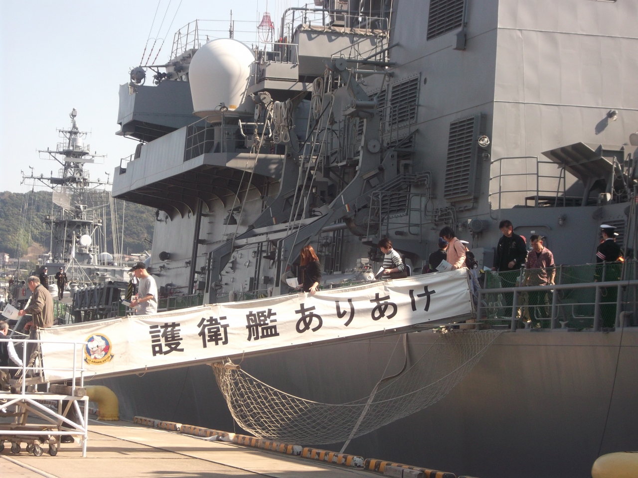 今日の公開対象は、護衛艦ありあけ。現役の護衛艦を目の前で見て、しかも甲板にも上がることができました。