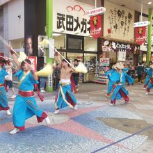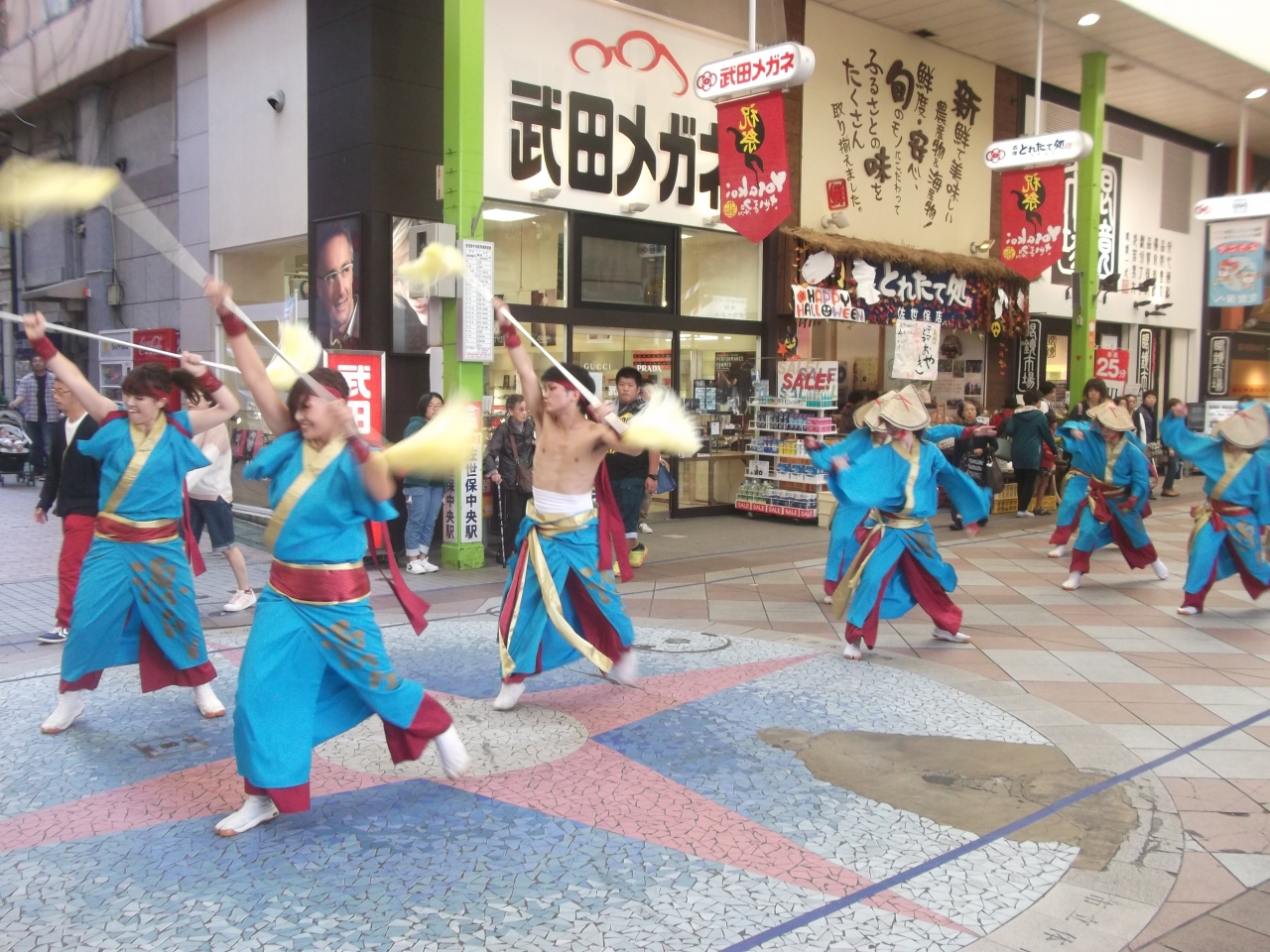 アーケードから音楽が聞こえて来て、何だろうと思っていると、次から次へと、とても一生懸命に踊っている皆様を見ることができました。