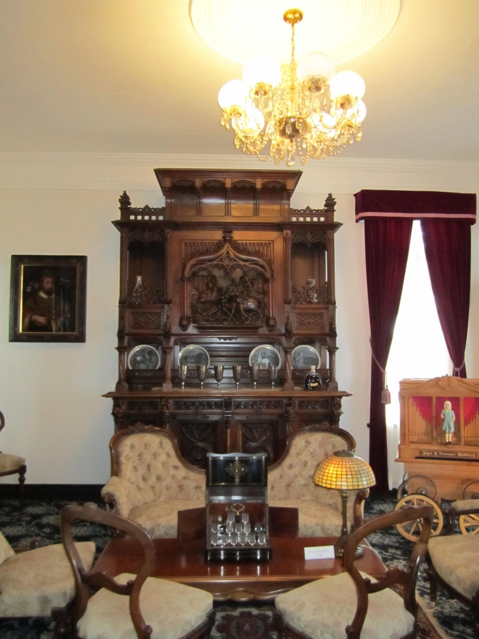 ステンドグラスや、キャビネットの細やかな彫刻、美しいランプの数々、