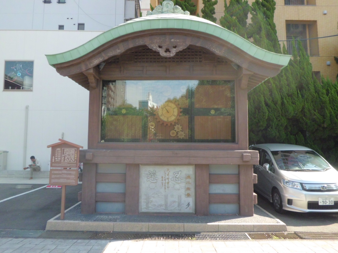 大須観音の境内の一角に小さな小屋があります。11、13,15,17時の4回、からくり人形が約6分間演じます。7代藩主である徳川宗春がモデルで、派手な衣装をまとった宗春が「浦島」を演じます。題目は2種類あるようです。屋外のガラス張りの小さな小屋なので、晴れていると反射して見づらいです。