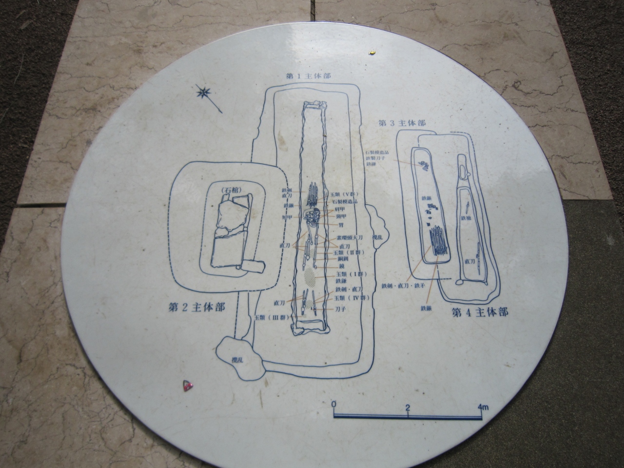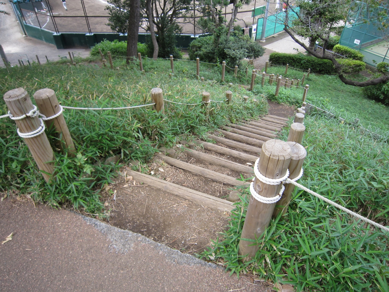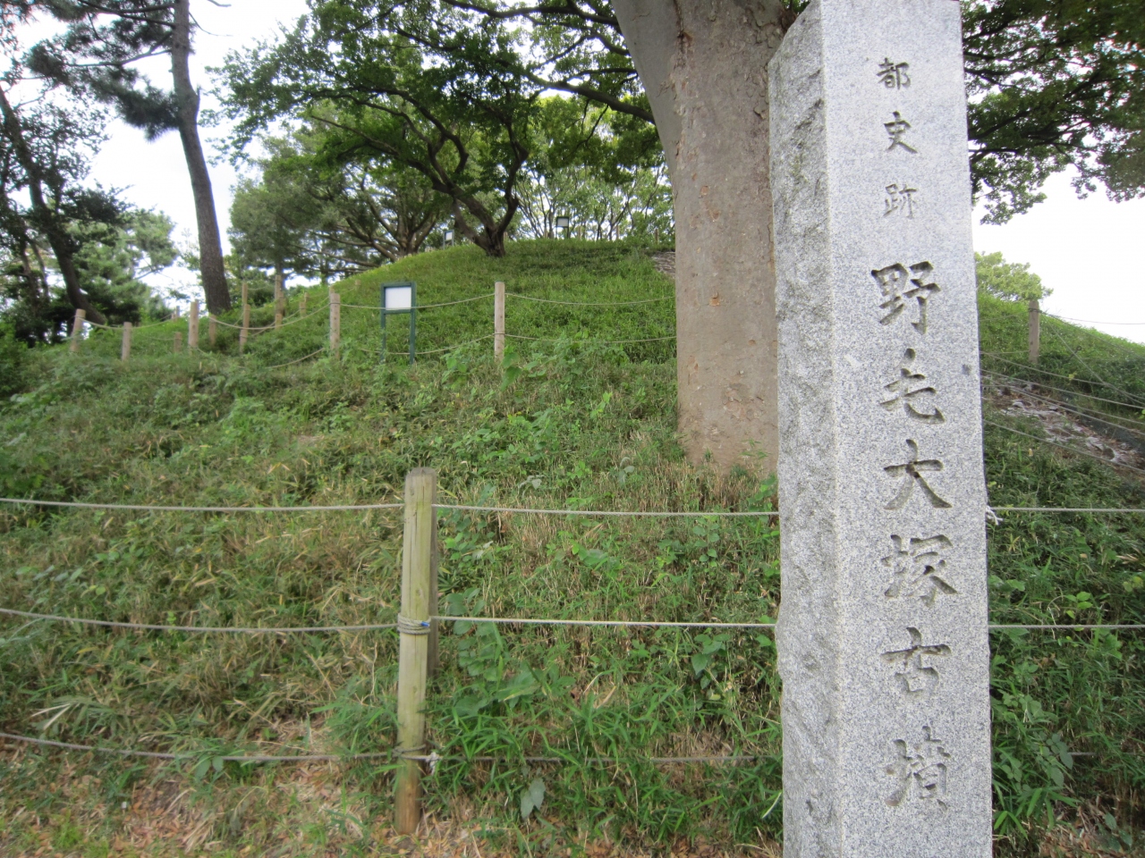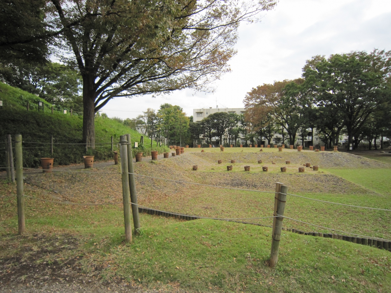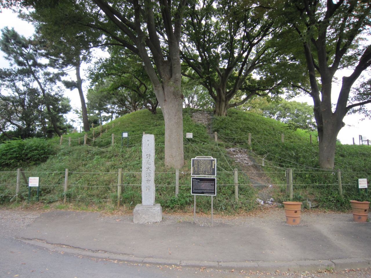 玉川野毛町公園前バス停で降り野球場とテニスコートの間を行くと左側にあります。帆立貝式前方後円墳との説明板がありました。古墳の上には丸太の階段を上ります。急ですので滑らないよう注意して下さい。上は平らに整備され古墳の埋葬施設を説明するための状況図がありました。子供たちの遊び場になっているようです。公園内を見渡せます。