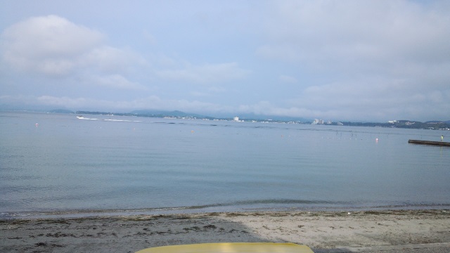遠くには遠州の山々、その手前には東名高速が浜名湖を通っていて、