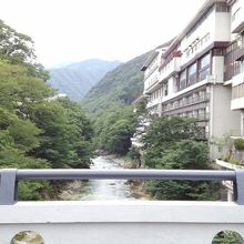 ここからみる景色は美しいものです。橋のたもとには足湯が整備された温泉公園もありました。