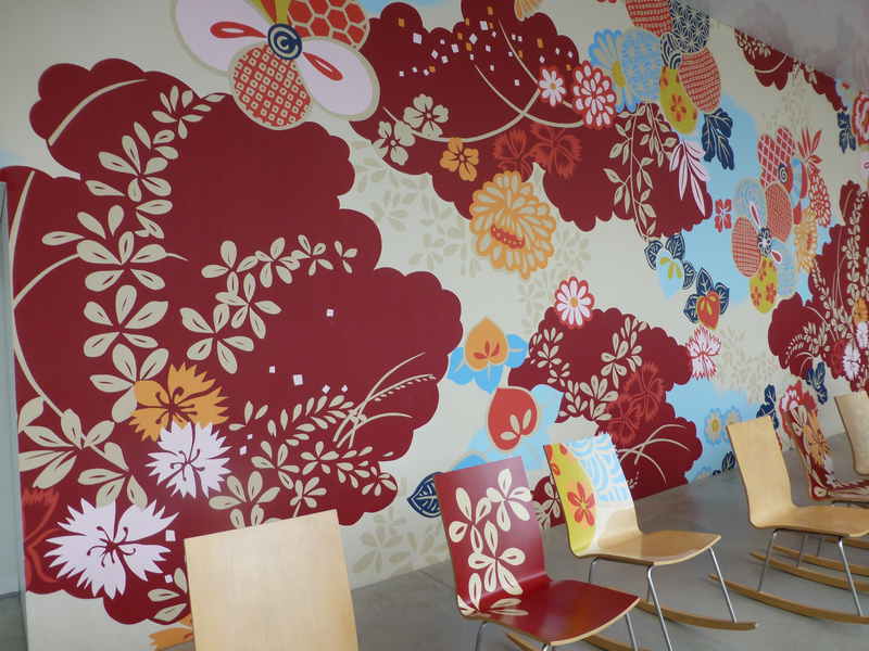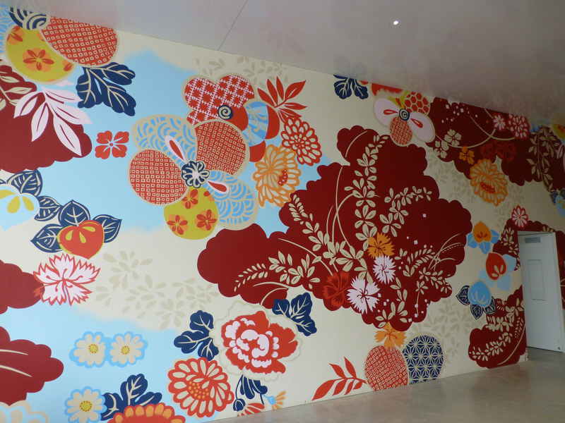 加賀友禅の文様と台湾の伝統的な図柄がモチーフの長さ27メートルの壁画は