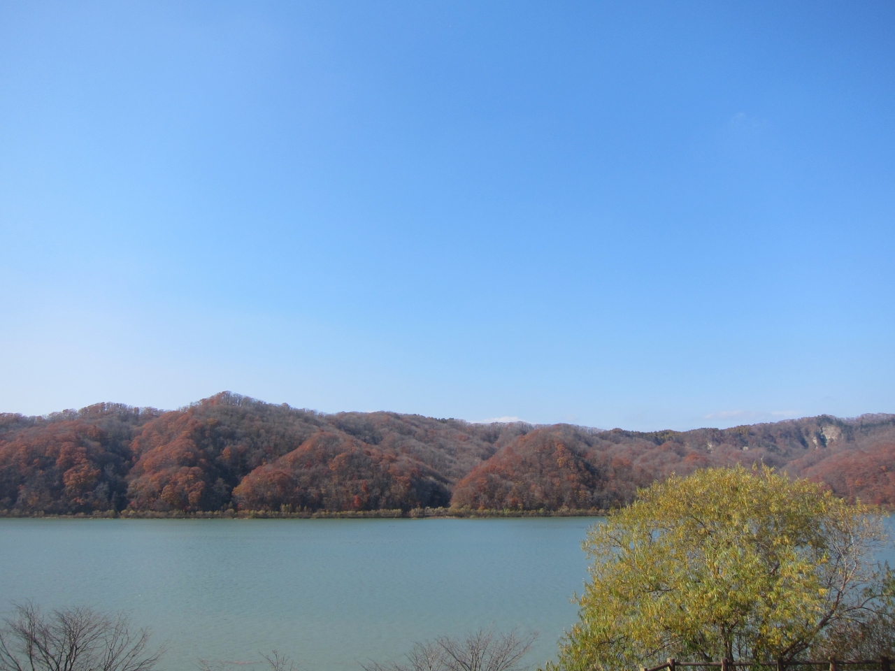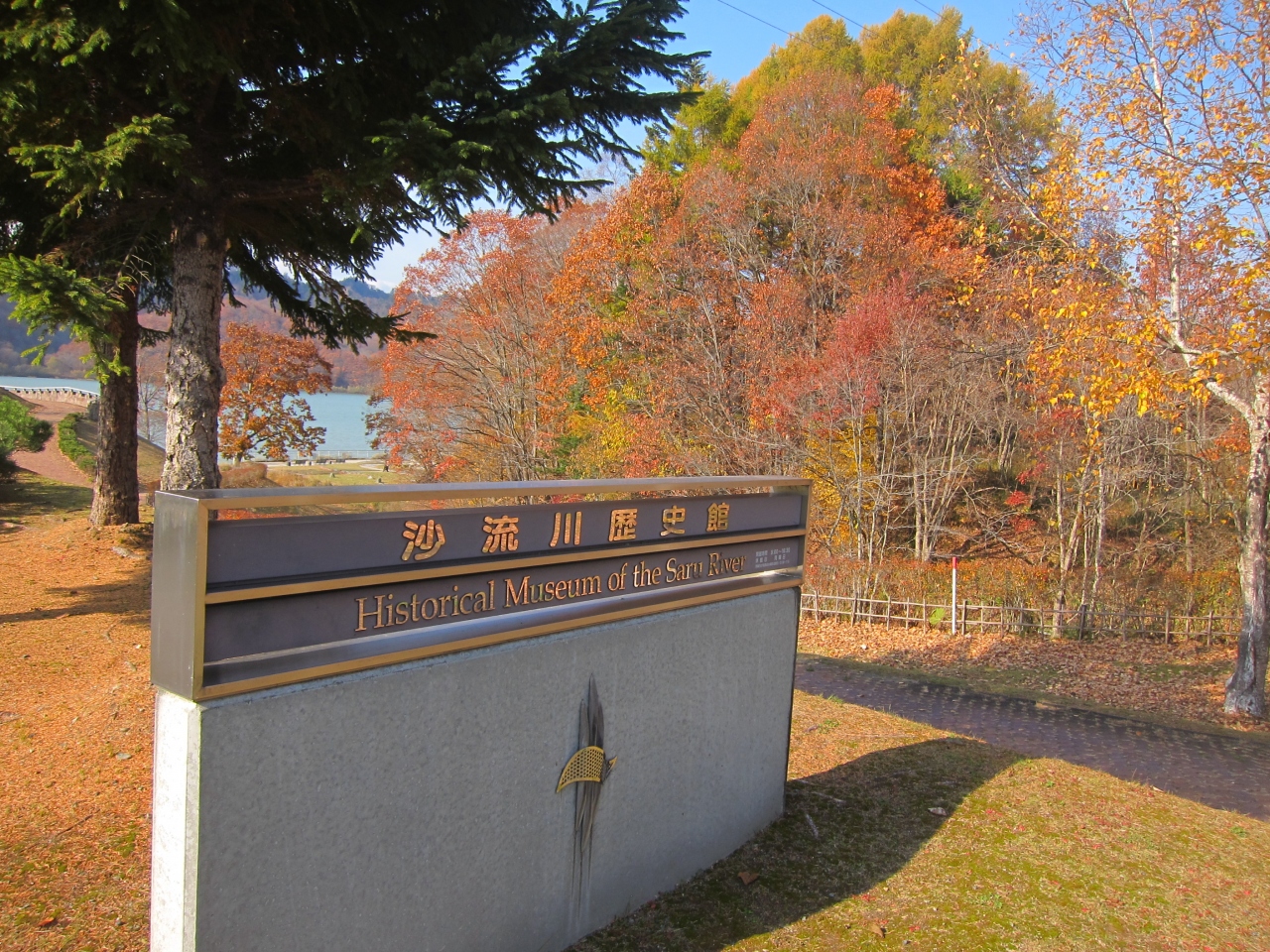 目の前の二風谷湖を一周する整備されたサイクリングコースもあります。大きなアップダウンもなく、回りやすいコースです。ダムの上を渡ることもできます(自動車は進入禁止)。紅葉の時期の天気の良い日は特にオススメです。