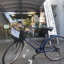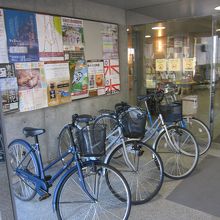 無料のレンタサイクルを置いています。26インチのものから小さな子ども用まで。併せて7、8台の自転車が置いてありました。