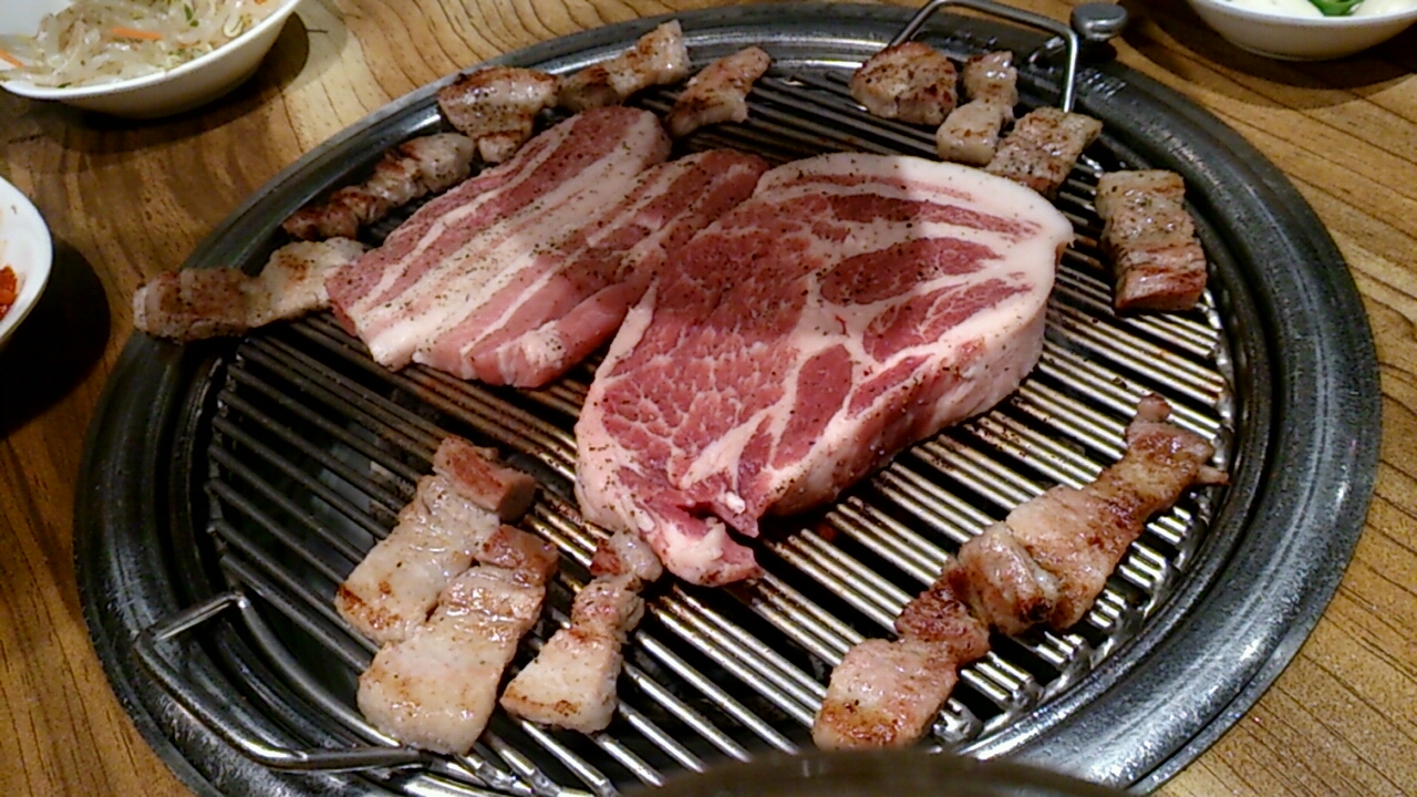 セットのメインはもちろん肉(サムギョプサル)で