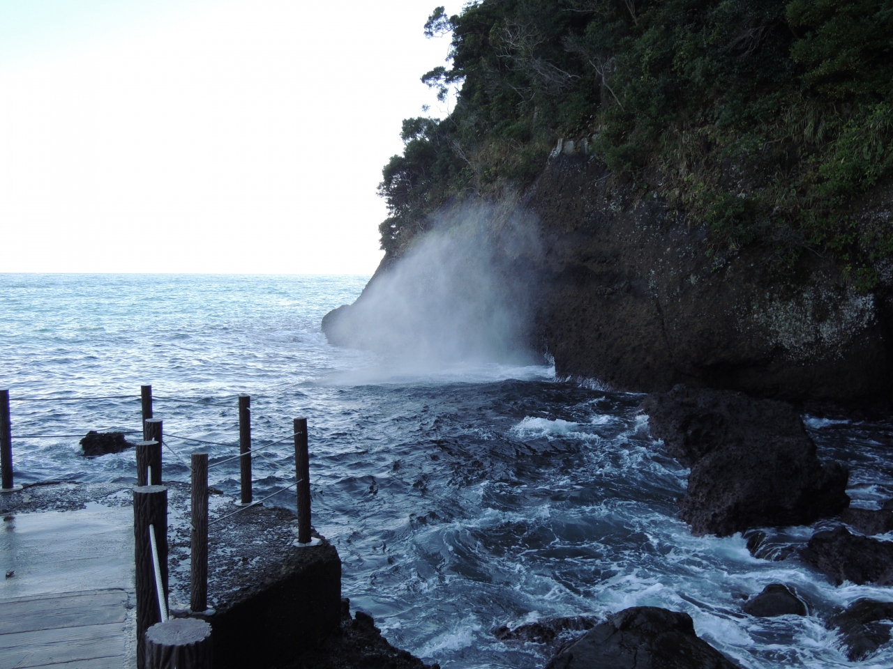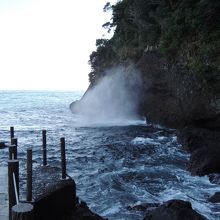 汐吹公園の駐車場からスロープを下り遊歩道の行き止まりのところから汐吹岩が見ることができます。小さな穴から霧状に汐が噴出し、その音も体の中に染みるような音で「ザブーン、シュー」という感じで噴出し目と耳で自然の美しさを感じることができオススメです。ただ見るとき気をつけないといけないことがありまして、汐吹の海水がかかることはないのですが、見るところの場所は時より高波があたることがあって、運が悪いとびしょ濡れになりますので、遊歩道が波で濡れている時は気をつけてください。