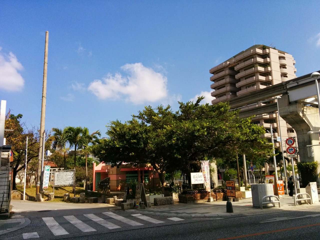 国際通りを横切るゆいレール「牧志駅」前の国際通り沿いに『牧志公園』があります。