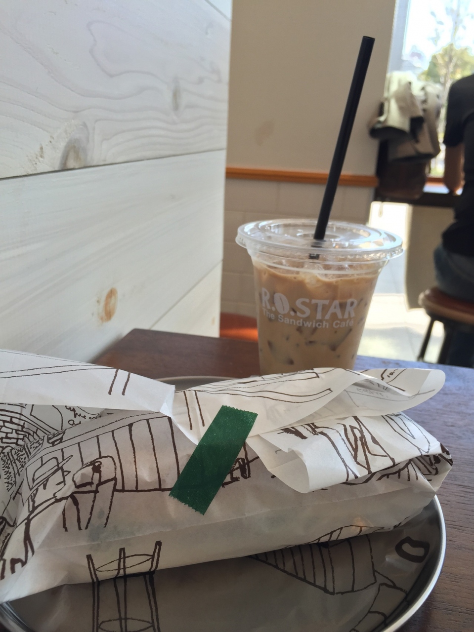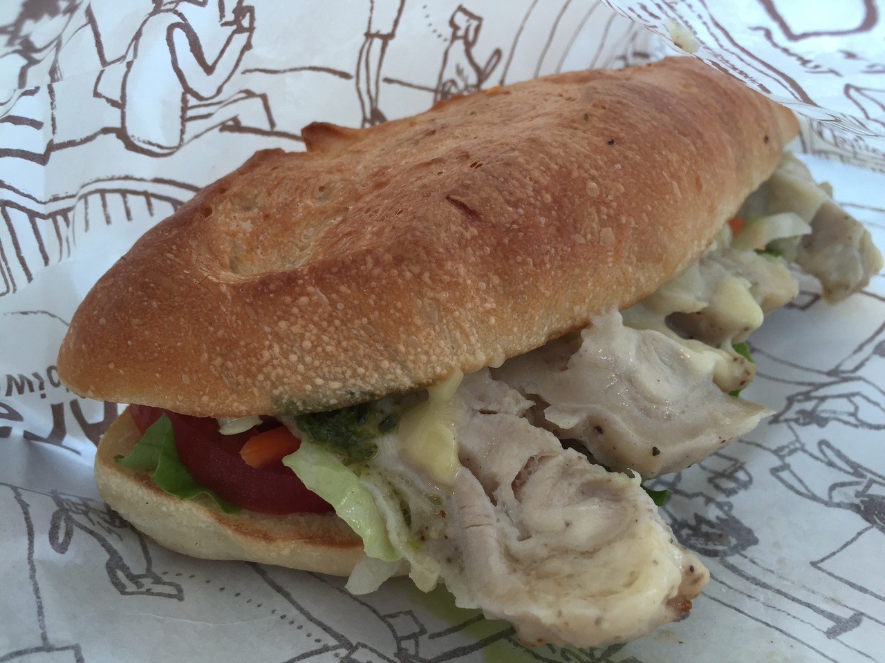 バジルチーズチキンサンドにしました。野菜がたっぷりで、食べ応えあり。
