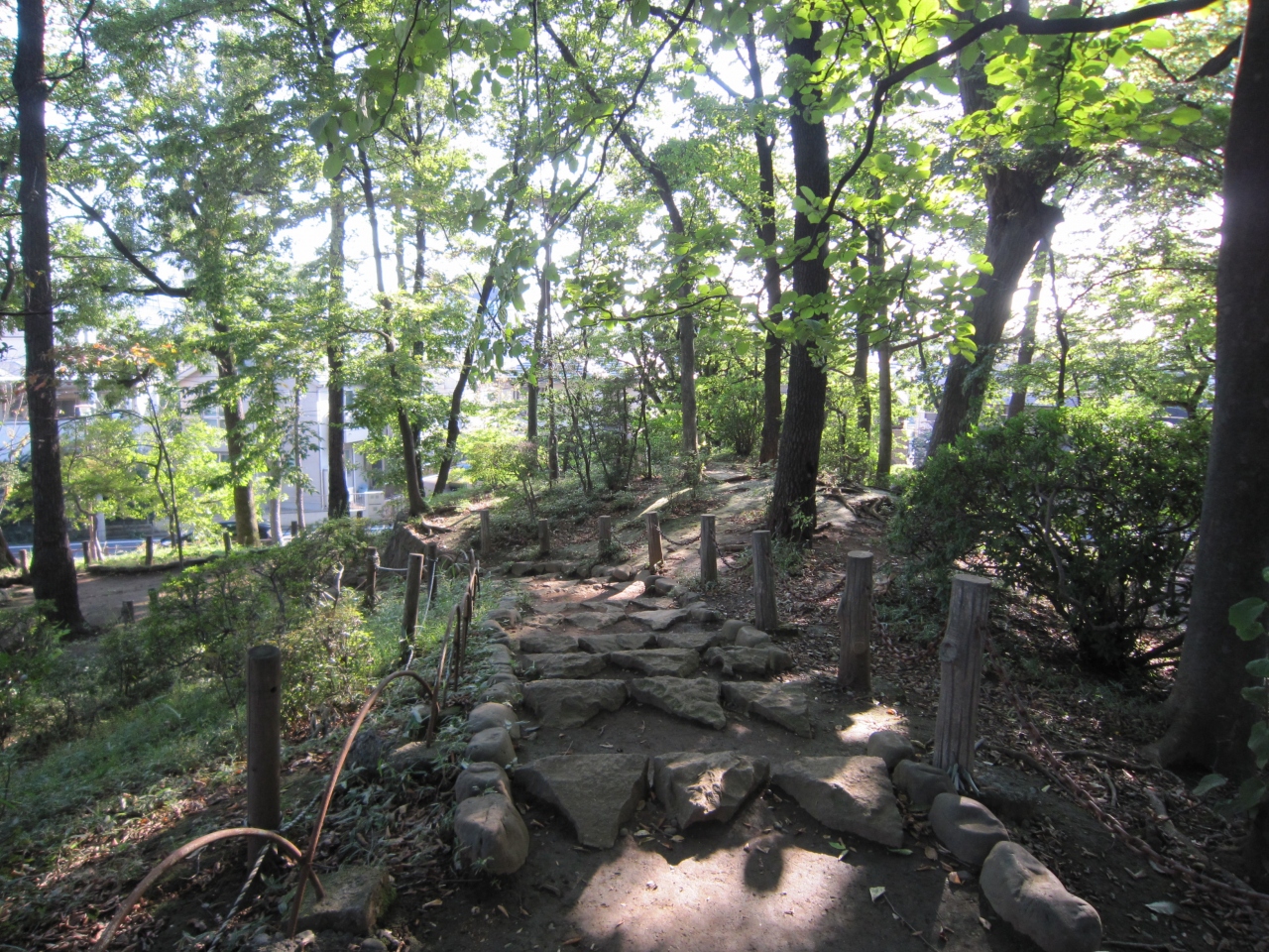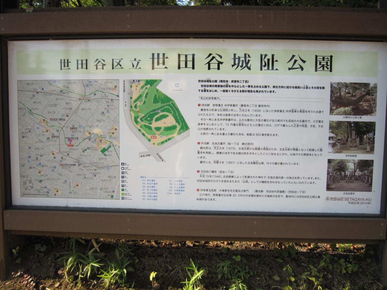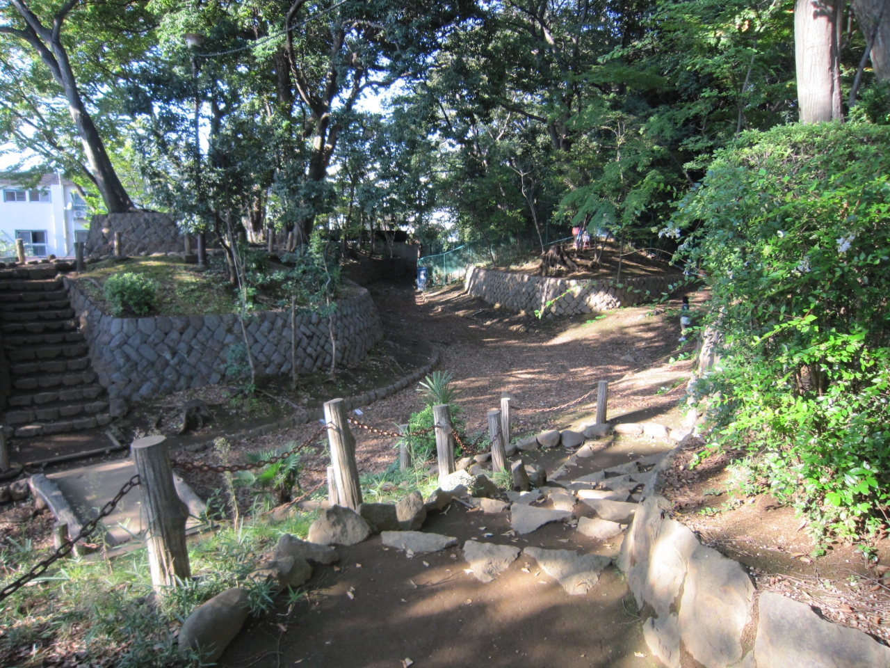 東急世田谷線宮の坂駅から豪徳寺の前を通り直ぐです。世田谷区内唯一の歴史公園、14世紀から16世紀頃まであった城の一部です。公園内は土塁、空堀の一部があり樹木が生い茂っています。道路側が遊歩道となっており整備され、ちょっと歴史を感じます。大人はベンチでくつろぎ、子供たちは空堀や児童遊園で遊んでいました。