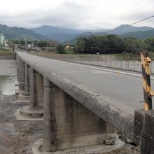 高知県越知町の町役場の北側、仁淀川にかかる沈下橋です。他の沈下橋に比べて歩行用の通路があり、歩車分離方式になっています。橋からは、越知町のシンボルとも言える横倉山を間近に見ることができます。また時折、バスも通行しています。