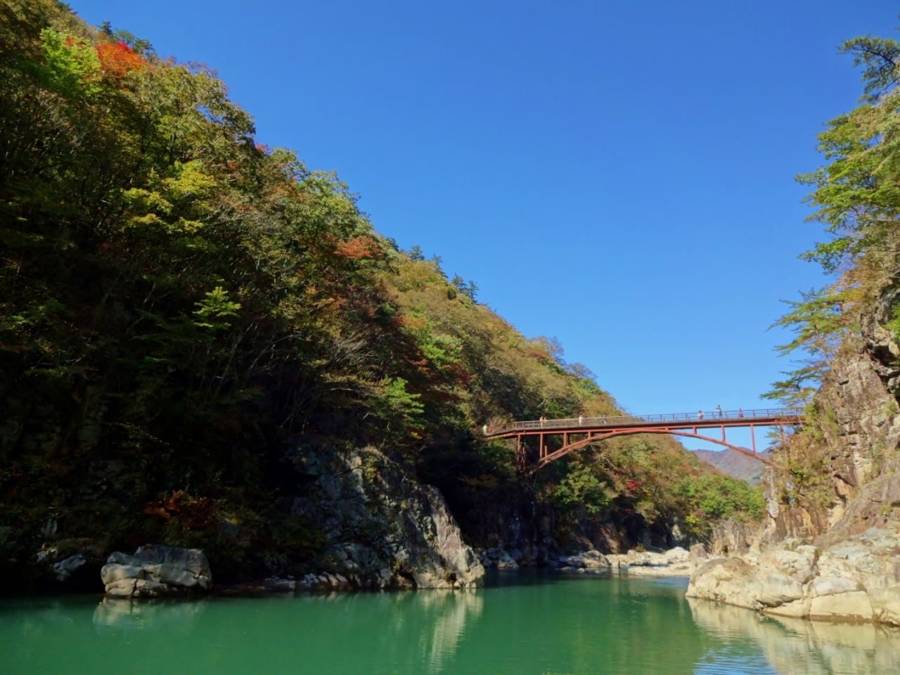 虹見橋から対岸に渡って上流のむささび橋まで歩いて、そこから駐車場まで戻ると約1時間のハイキングです。