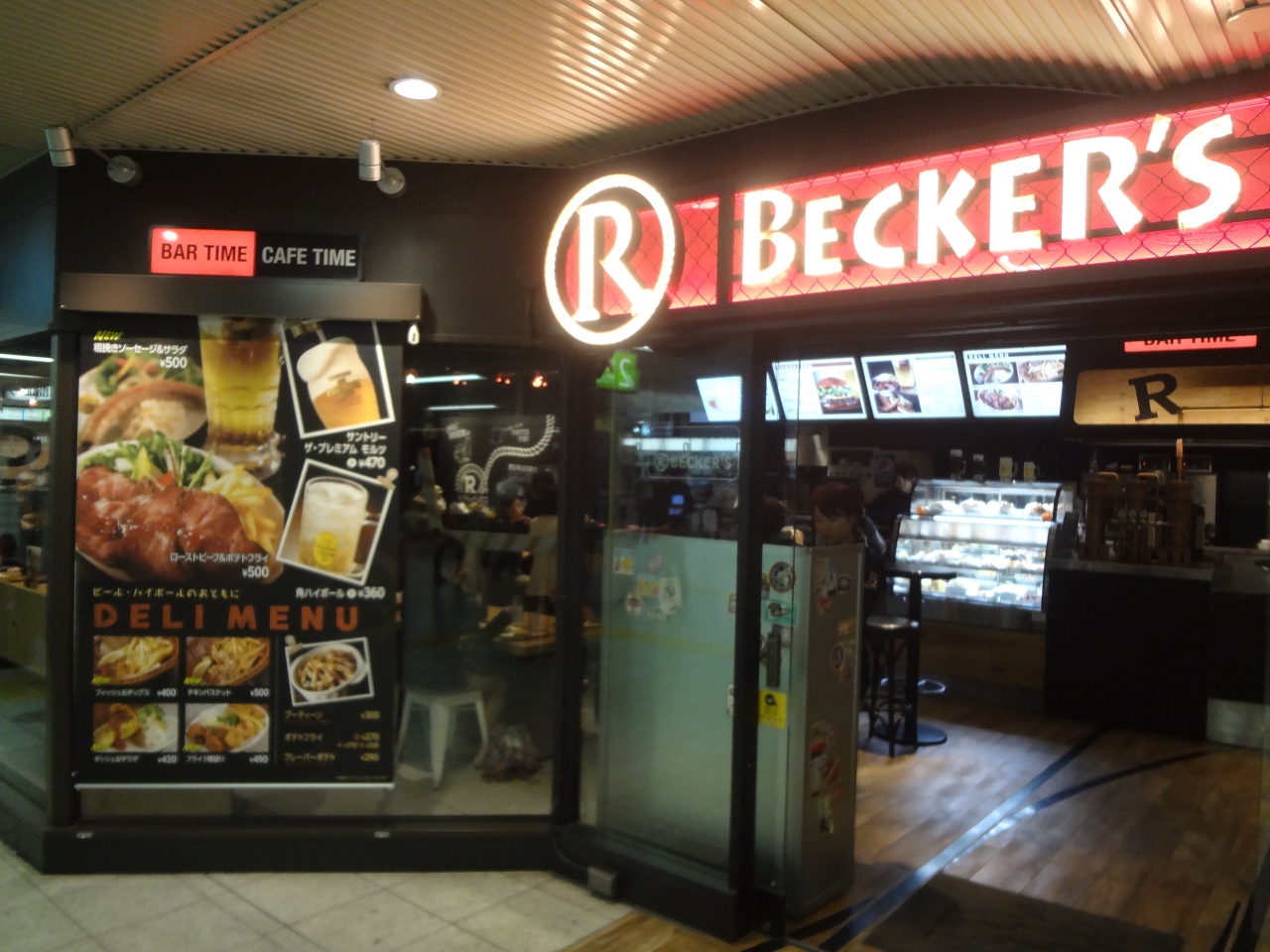 田町駅構内にあるベッカーズです。ここの店舗は生ビールやハイボールなどのアルコール類を提供しています。もちろんそれに合ったつまみも何種類かあるので会社帰りの一杯が出来ます。駅中出し、ちょこっとだけ飲んで帰りたいときに便利です。