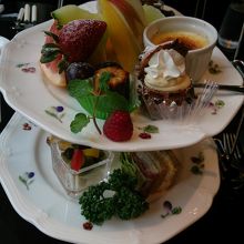 上段はデザート、下段はサンドイッチやキッシュなどが載っています。