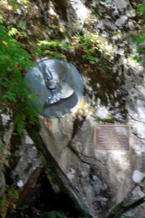 河童橋から梓川に沿って約800メートルほど上高地温泉ホテルの方に行くと右手の岩にウエストンさんのレリーフが埋め込まれています。日本アルプスを広く歩いて、最初に日本国内や世界に知らしめた人で、言わば「日本アルプスの生みの親」と言える人のレリーフが上高地にあります。