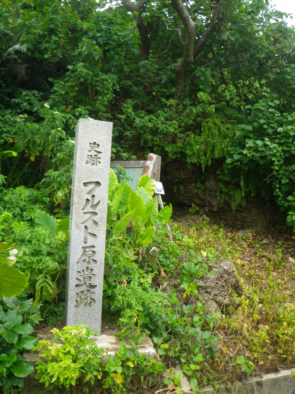 旧石垣空港の北側にある遺跡です。レンタカーで訪れました。県道から小さな看板を頼りに、未舗装の農道のような細い道をすすみます。この道であっているのか途中で不安になりますが、その先にありました・笑。石塁と呼ばれるグスクのような城壁が残っていました。この地は15世紀に八重山諸島を支配した豪族・オヤケアカハチの居城跡と言い伝えられているそうです。